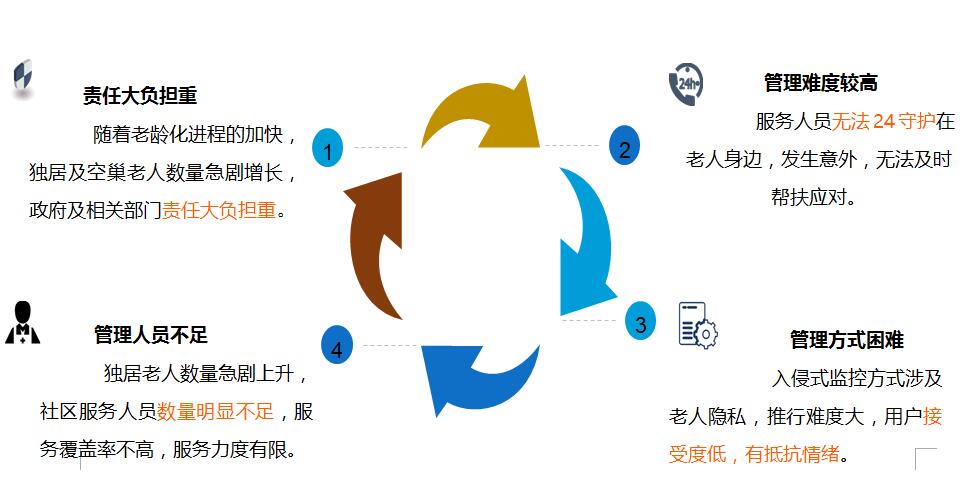 将新型智能设备和手段应用到服务养老中去。通过安装智能门磁、烟感报警器、红外监测和智能读水表仪四件智能设备,打破了街道以往一对一或者一对多的电话、上门关爱独居老人的传统模式,全面辐射辖区内所有独居老人的安全监测云管理。
