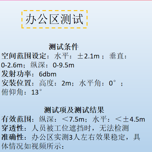 空间范围设定:水平:±2.1m ;垂直:0-2.6m;纵深:0-9.5m