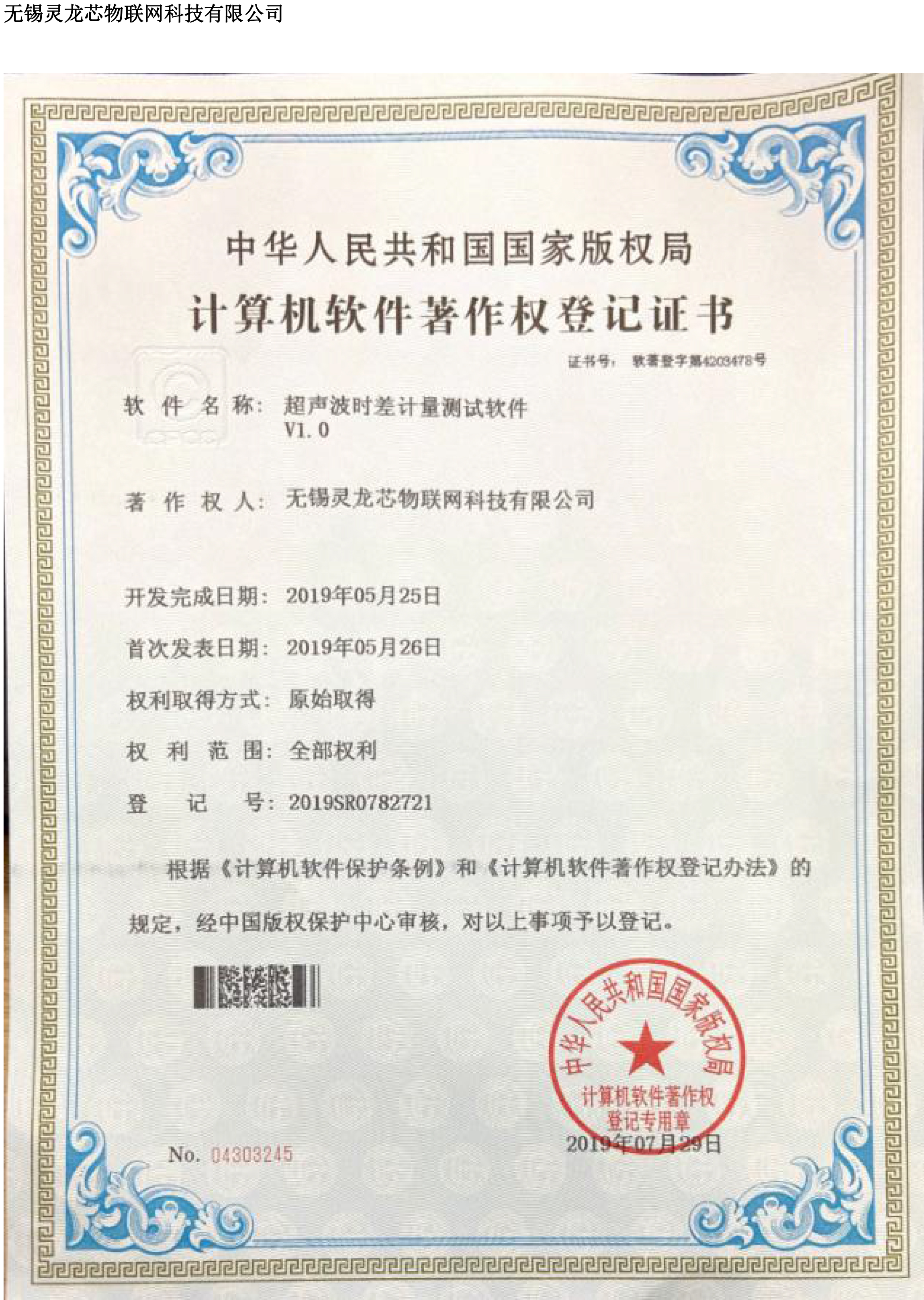 超声波时差计量测试软件-荣誉资质-无锡灵龙芯物联网科技有限公司