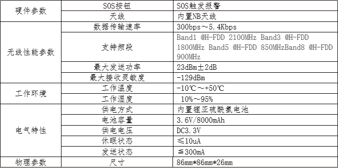 本产品支持独立安装,采用NB通讯技术,内置高容量电池,无需布线,施工简单,降低成本。当人员确认有危险事件如:恐怖、火灾、爆炸、踩踏等发生后,按下红色SOS按钮报警,报警信号通过无线传输到监控平台,便于发现危险事件及时处理。