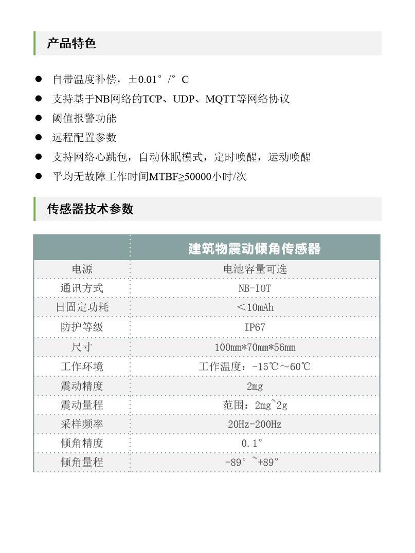 建筑物震动倾角传感器